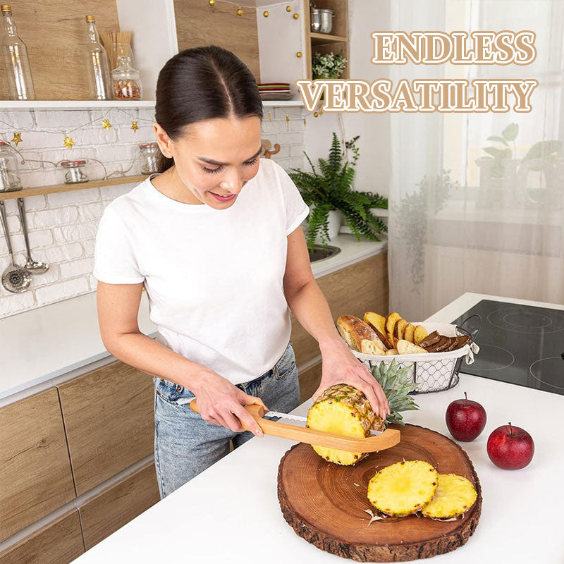 Experience the art of consistent slicing with our Bread Bow Knife. From the first slice to the last, our knife delivers uniform cuts, making every meal preparation a breeze.say goodbye to uneven slices and hello to culinary perfection.