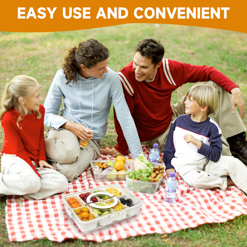🔒 Secure & Portable: Equipped with secure lids, this tray ensures that your food stays fresh and protected during transportation or storage. The sturdy handle provides a comfortable grip, allowing you to carry it with ease from the kitchen to the dining area or even outdoors.