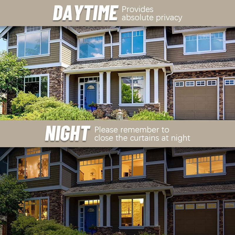 🔒 One-Way Anti-Peeping: Enjoy daytime privacy with our innovative film. It allows you to see outside during the day without being seen by the outside. But please note that at night, when the indoor lights are on, the outside can see inside. The film adjusts visibility according to brightness, providing optimal privacy during the day.