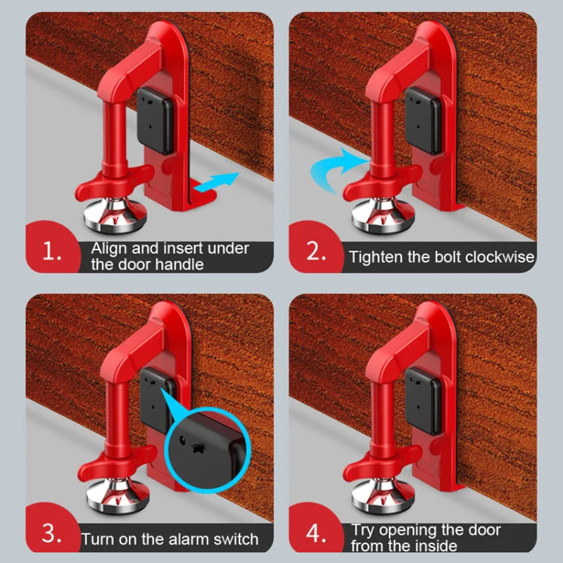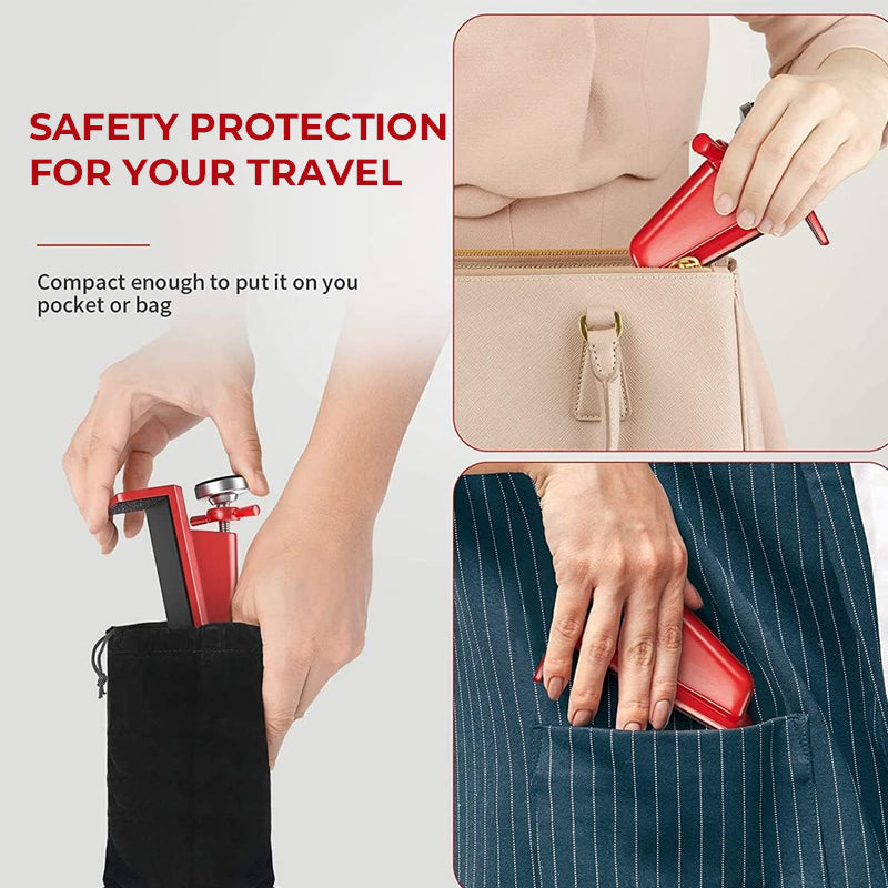 - 【Versatile Functionality】 This Portable Door Lock is not only great for travel but also provides added security at home, in your apartment or dorm room. Portable Door Lock can be used on most types of doors that swing inward, including wood, metal, and plastic. Portable Door Lock is also a great tool for self-defense and personal protection, giving you peace of mind in any situation.