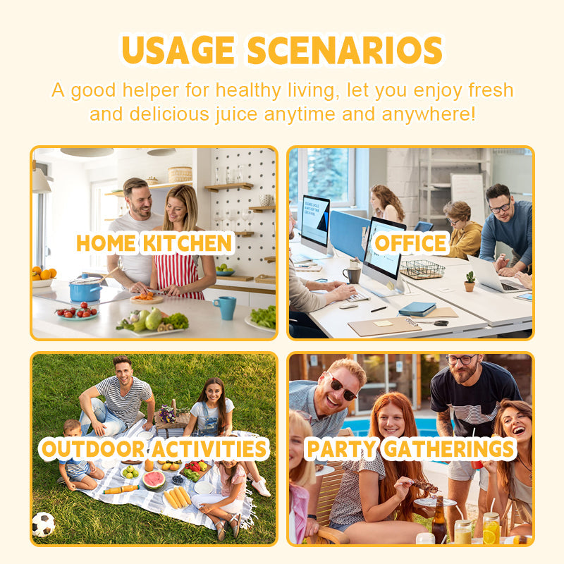 👔 Office: Quickly squeeze juice during work breaks, supplement vitamins, and improve work efficiency.
